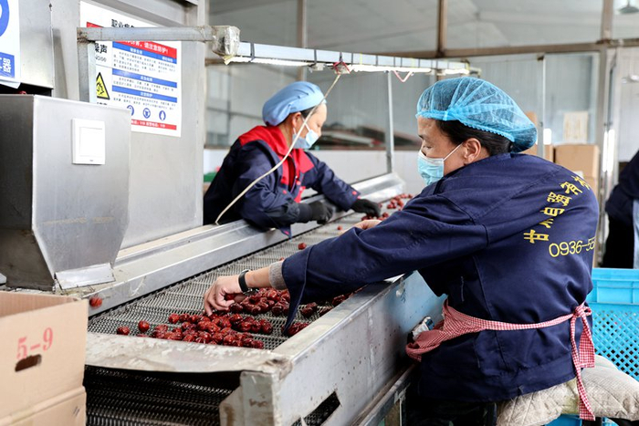 走进甘肃自强生态农林科技有限公司生产车间,机械轰鸣声不断,十多名残疾员工正在进行红枣挑选、打包等工作。
