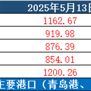 截至5月13日,新华·山东港口铁矿石进港指数报1446.68点,较5月6日上涨12.81点,涨幅0.89%;新华·山东港口铁矿石出港指数报1194.31点,较5月6日下跌59.87点,跌幅4.77%。