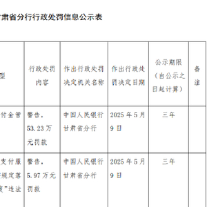 5月16日金融一线消息,据中国人民银行甘肃省分行行政处罚信息公示表显示,兰州易家万通支付服务有限公司因未按规定落实备付金管理制度,被警告,并罚款53.23万元。