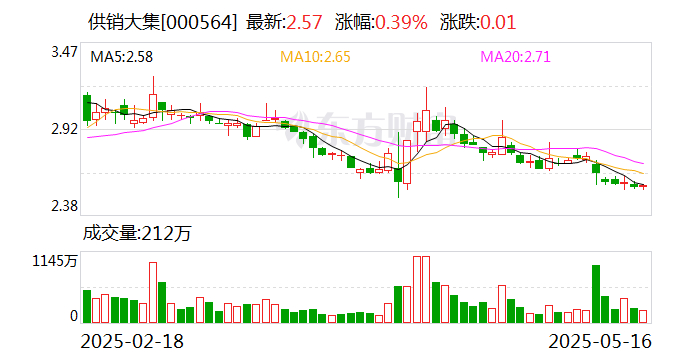 2025年一季度,供销大集实现收入3.65亿元,归母净利润-629万元。