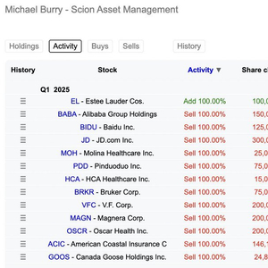 根据周四公布的13F监管文件显示,曾准确预测2008年房地产市场崩溃的对冲基金经理Michael Burry在2025年一季度清仓了几乎所有的股票,仅保留了雅诗兰黛的股票,同时对英伟达及多家中国科技公司建立了看跌期权头寸。