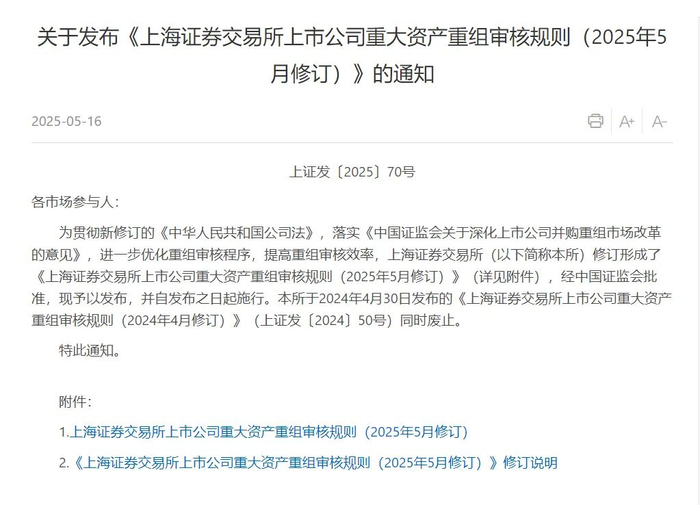 5月16日,沪深交易所均修订发布《上市公司重大资产重组审核规则》(以下简称《重组审核规则》)及配套业务指南。证券时报记者获悉,《重组审核规则》新设简易审核程序,对符合条件的上市公司发股类重组,大幅简化审核流程,缩短审核时限,提高重组效率。