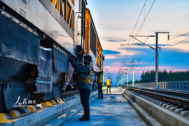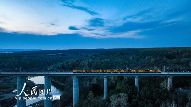 2025年5月15日,中国铁路沈阳局集团有限公司沈阳工务机械段职工操纵大型养路机械在沈佳高铁沈白段长白山西站至长白山站间进行钢轨打磨作业。近日,沈阳至白河高速铁路静态验收工作正式启动,向全线年内具备开通条件迈出重要一步。沈佳高铁沈白段自沈阳北站引出,终到长白山站,正线全长430.1公里,设计时速350公里,是国家《中长期铁路网规划》中东北东部快速铁路通道的重要组成部分。线路开通后,北京至长白山的最短列车运行时间将压缩至4小时以内,沈阳至长白山最短列车运行时间将压缩至1.5小时。李季春摄(人民图片网)