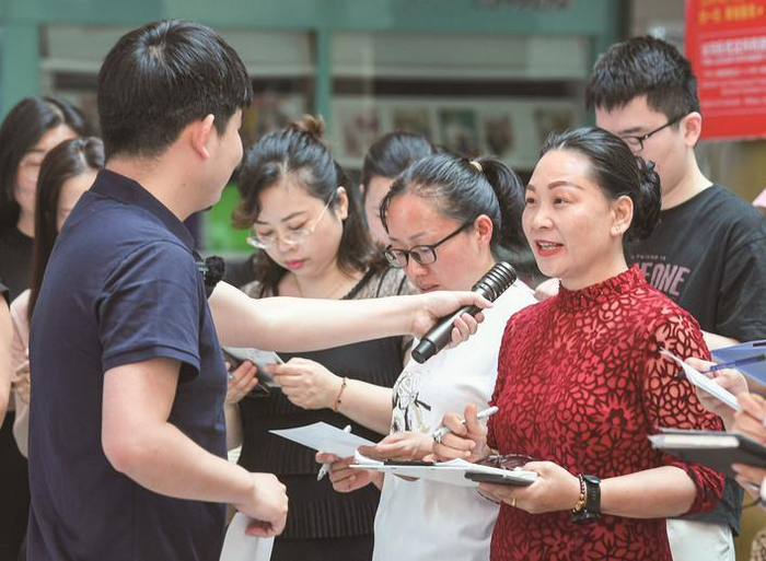 5月14日,商户在义乌国际商贸城跟着老师学习西班牙语。从今年3月开始,浙江省义乌国际商贸城“外语晨练基地”面向全体商户免费开设英语、阿拉伯语、西班牙语课程,学习时间为周一至周五上午。商户们利用上午开门营业前的时间来到“外语晨练基地”,学习外贸交易常用外语对话,提高与国外客户沟通交流的能力。新华社发 时宽兵 摄