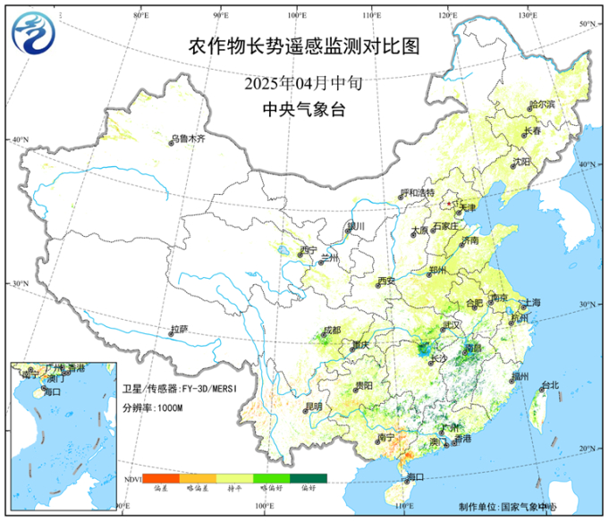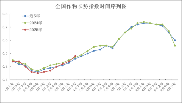 图6全国农作物长势遥感监测(2025年4月中旬)