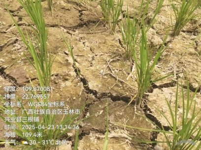 图4 广西玉林早稻秧田干裂(左)和柳州春植甘蔗缺水黄化(右)(4月23日)