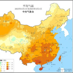 图1全国平均气温及气温距平图(2025年4月1日至4月30日)