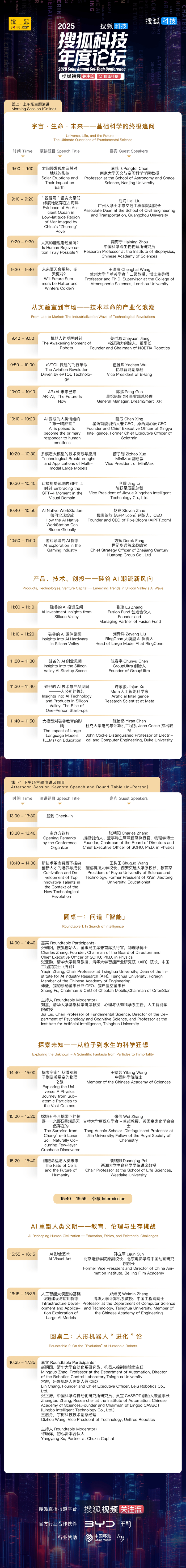 2025搜狐科技年度论坛今日开幕,张朝阳、王树国、王贻芳、张亚勤、傅盛等大咖云集