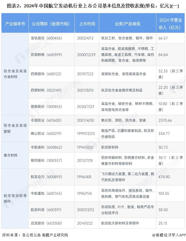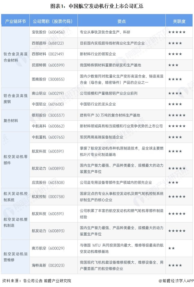 1、航空发动机行业上市公司汇总