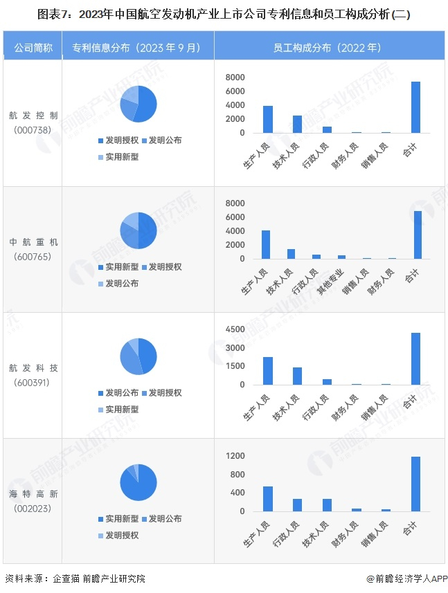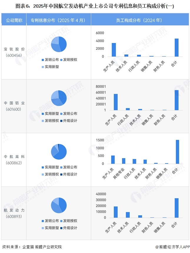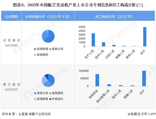 从航空发动机行业的上市企业已有的公开信息分析,专利信息相对较多的企业是中国铝业和航发动力,专利数量超过1000条;员工总数较多的企业为南方航空,员工总数超过10万人。