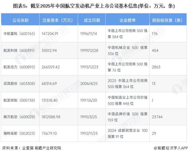 2、航空发动机行业上市公司基本信息对比