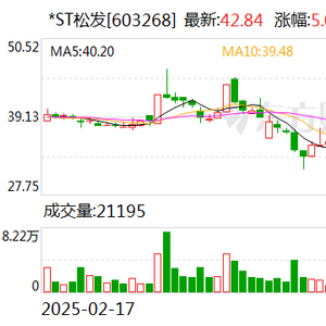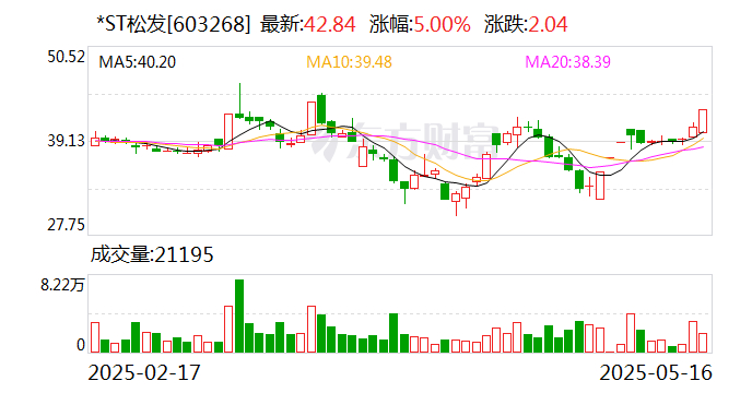 截至5月16日收盘,*ST松发股价报42.84元/股,涨幅达5%,总市值为53.19亿元。