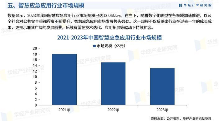 数据显示,2023年我国智慧应急应用行业市场规模已达13.06亿元。在当下,随着数字化转型在各领域加速推进,以及全社会对公共安全重视程度不断提升,智慧应急应用市场发展势头强劲。