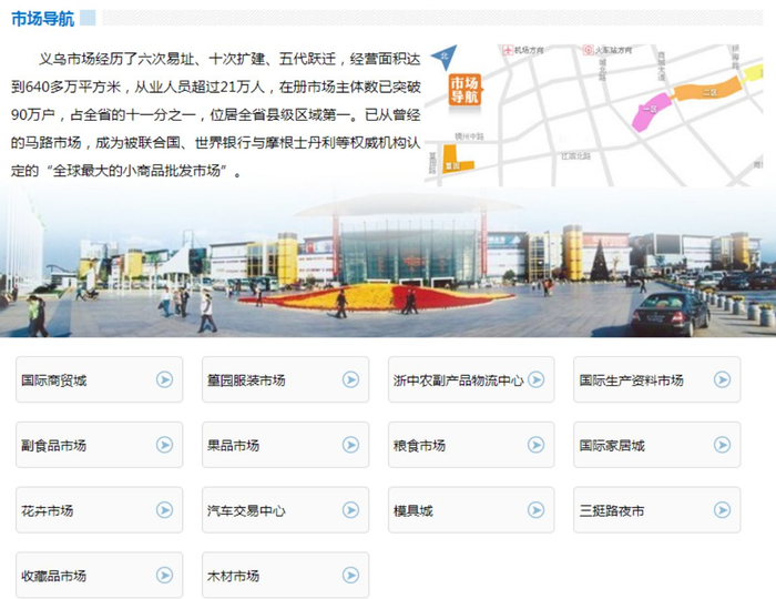作为“全国最大的小商品集散中心”,义乌国际商贸城经营面积达640余万平方米,共设七大市场,聚集有7.5万个商位、经营26个大类、210万种商品。