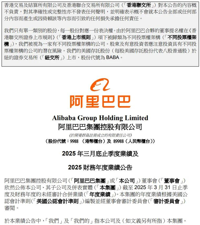 2025年5月15日晚间,港股上市公司阿里巴巴(09988.HK)发布2025财年第四季度及全年财报。