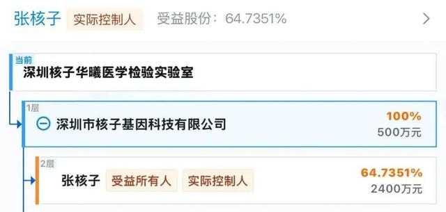 天眼查APP显示,深圳核子华曦医学检验实验室成立于2015年7月,由深圳市核子基因科技有限公司100%控股,后者为张核子所创办企业。