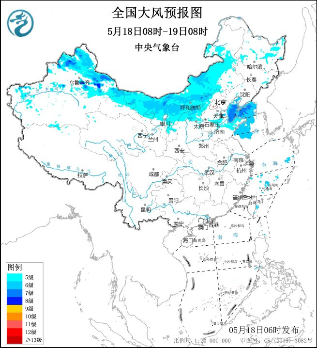 中央气象台:大风预报24小时(05/18)