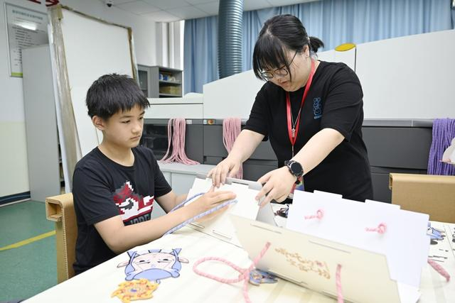 在上海新闻出版职业技术学校,孩子们在体验“灵珠榫语・哪吒宝盒”项目