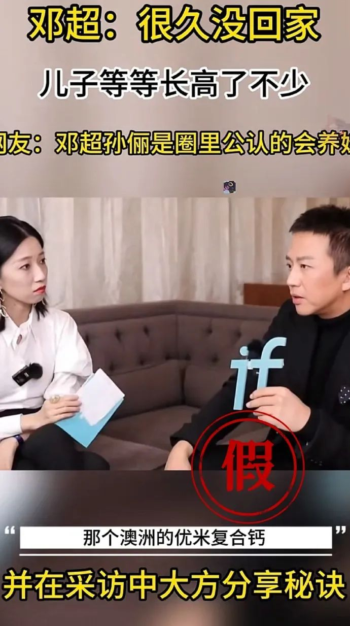 工作室近日发现有部分网络用户在自媒体平台发布与邓超先生/孙俪女士相关的虚假广告宣传视频,此类虚假视频通过技术合成的方式,把邓超先生的形象和声音制作成虚假采访视频为某些商家的产品进行推荐。本工作室在此严正声明:凡此类自媒体账户所发布的产品推荐视频均为虚假信息,请网友一定不要相信,避免上当受骗!!