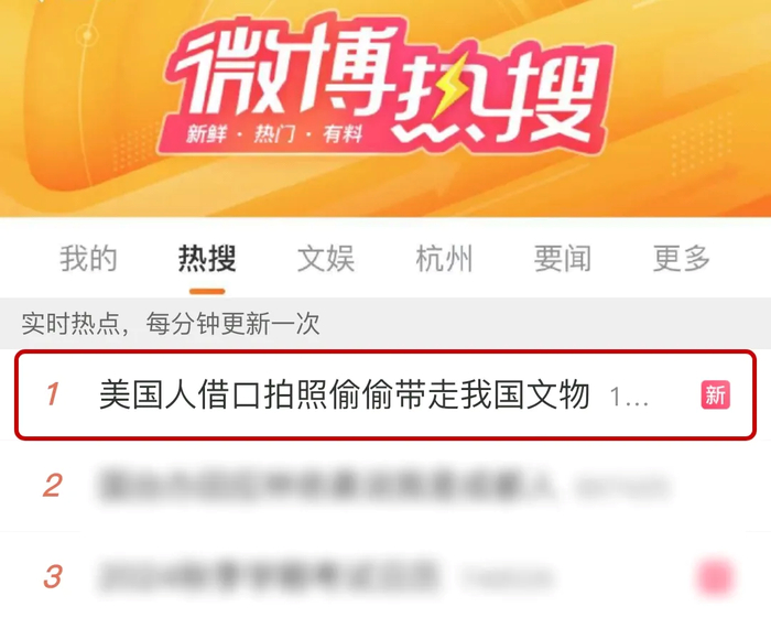 在2024年9月10日举行的《帛书传奇》启动仪式上,我方首次完整披露了子弹库帛书流失美国的关键证据,引发国际舆论高度关注。发布会相关内容“美国人借口拍照偷偷带走我国文物”话题词登上微博热搜主榜第1位长达15小时,并被美欧多国媒体转发和报道。