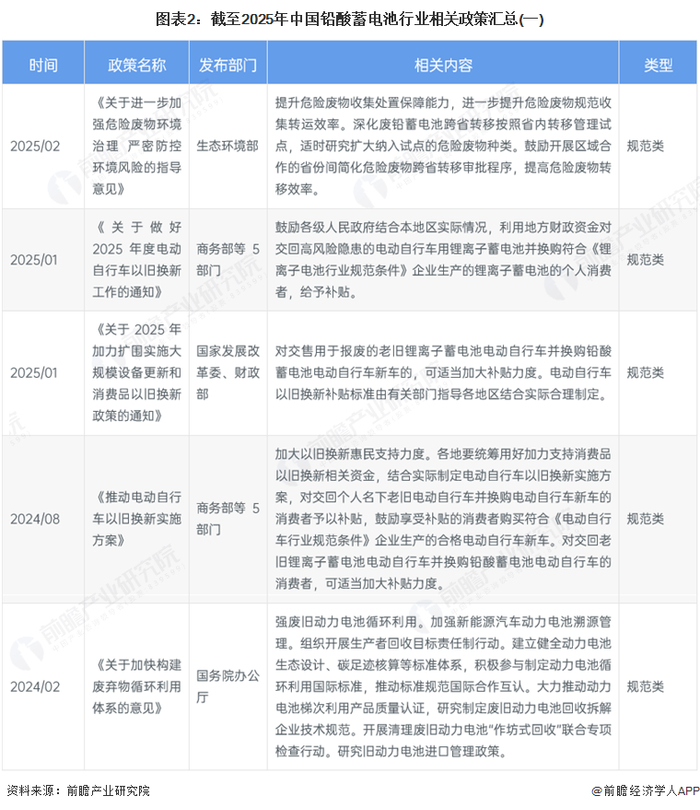 重磅!2025年中国及31省市铅酸蓄电池行业政策汇总及解读(全)“推强调废铅蓄电池的规范回收、推动铅蓄电池污染治理”