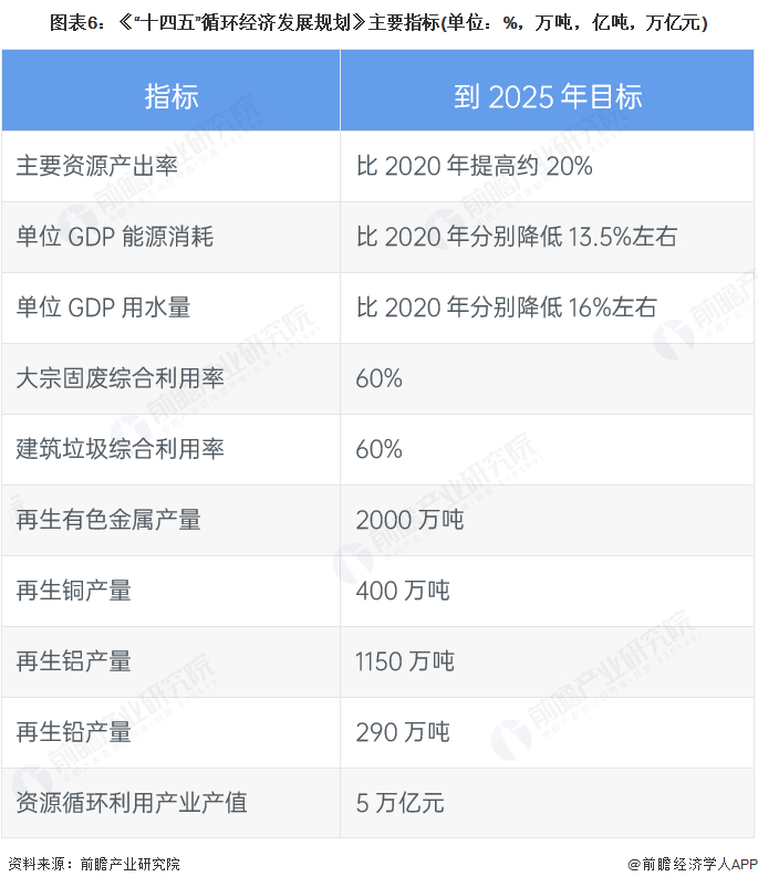 国家发改委印发《“十四五”循环经济发展规划》,主要部署了五大重点工程和六大重点行动,包括城市废旧物资循环利用体系建设、园区循环化发展、大宗固废综合利用示范、建筑垃圾资源化利用示范、循环经济关键技术与装备创新等五大重点工程,以及再制造产业高质量发展、废弃电器电子产品回收利用、汽车使用全生命周期管理、塑料污染全链条治理、快递包装绿色转型、废旧动力电池循环利用等六大重点行动。