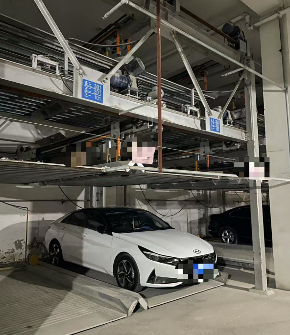 5月13日,在合肥市习友路上的现代名苑小区地下停车库里,记者看到,机械停车位上正停着车辆,1层、2层停车位上均有车停放,控制升降的控制器处于工作状态,不时有车主前来操作车辆停放。