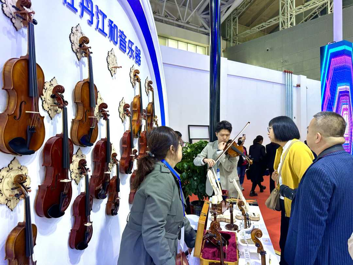 帝王蟹、雪蟹等鲜活水产品收获不少关注,手工小提琴、渤海靺鞨绣,以及猴头菇、黑木耳、响水大米、黑蜂椴树蜜等地理标志产品也同样“吸睛”。在牡丹江展区一角,许多参展嘉宾驻足欣赏精彩的小提琴演奏。演奏用的手工小提琴来自牡丹江和音乐器有限公司,该公司年产中高档提琴1万余支,产品出口到美国、德国等十几个国家和地区。精美的手工制作、出色的音色品质,吸引不少客户前来咨询试音洽谈选购,其中不乏国外客户。该公司销售经理胡继国介绍说,此次他们挑选出选用珍稀木材制作、音色醇厚独特的小提琴参展,为方便参观者欣赏产品、聆听音色,还设置展示区、演奏区和洽谈区,方便参观者欣赏产品、聆听音色,与企业深入交流合作。