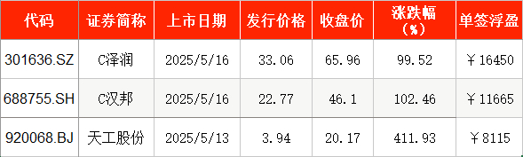 5月13日,天工股份在北京证券交易所(下称“北交所”)正式挂牌上市,发行价为3.94元/股,截至上市首日收盘,该股报20.17元/股,涨幅为411.93%。以收盘价计算,投资者中一签浮盈为8115元。