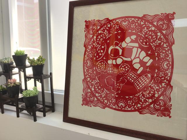 更吸睛的是食堂的装饰风格。外墙上是航天主题和社区养老的彩绘,房间里摆放着各类与航天主题相关的剪纸和装饰。老年食堂变身为航天主题餐厅。工作人员说,创意源自社区议事会上居民的“头脑风暴”。“社区很多住户是航天系统的退休职工,航天精神早已烙印在老人的内心深处,大家纷纷建议,食堂也要有‘星辰大海’。与此同时,社区还有许多老人对非遗剪纸十分感兴趣,希望能通过剪纸表达对航天事业的热爱。于是大家商量决定,把非遗和航天融合起来,用航天主题的各类剪纸装点食堂。”