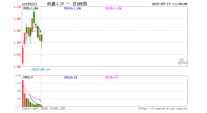 5月19日,截止午间收盘,机器人ETF基金(159213)跌1.14%,报1.041元,成交额530.71万元。机器人ETF基金(159213)重仓股方面,汇川技术截止午盘跌0.25%,科大讯飞涨0.47%,大华股份跌0.32%,中控技术跌2.24%,石头科技跌0.95%,双环传动跌2.30%,机器人跌1.00%,大族激光跌1.89%,巨轮智能跌1.00%,拓邦股份跌0.64%。