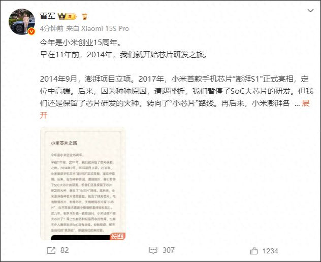 芯片是小米突破硬核科技的底层核心赛道,我们一定会全力以赴。这里,恳请大家,给我们更多时间和耐心,支持我们在这条路上的持续探索。