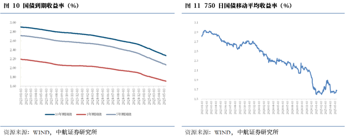 截至2025年5月16日,10年期债券到期收益率为1.6793%,环比-0.87BP。10年期国债750日移动平均值为2.2713%,环比-0.89BP。