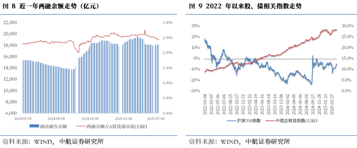 截至2025年5月16日,沪深300年内下跌1.16%,中债总财富(总值)指数年内上涨0.23%。本周股票市场上行,债券市场下行。