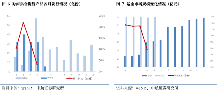 截至2025年5月16日,2025年券商资管累计新发行份额140.90亿份,新成立基金1086只。2025年4月共计新发资管产品224只,同比-0.88%,共计市场份额31.59亿份,同比下降44.71%。截至2025年5月16日,基金市场份额29.56亿份,实现基金规模32.00亿元。