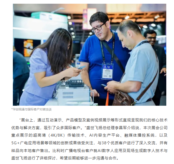 “我们在AI+4K/8K超高清、AI 安全等方面的成果,在展会上收获诸多认可。”数码视讯海外事业部总经理王雪表示,希望通过展示中国视频产业整体解决方案能力,推动更多自主创新标准融入国际媒体技术体系。数码视讯还将依托多年积累的海外服务经验,重点探索"本地化适配+联合创新"的新型合作范式。
