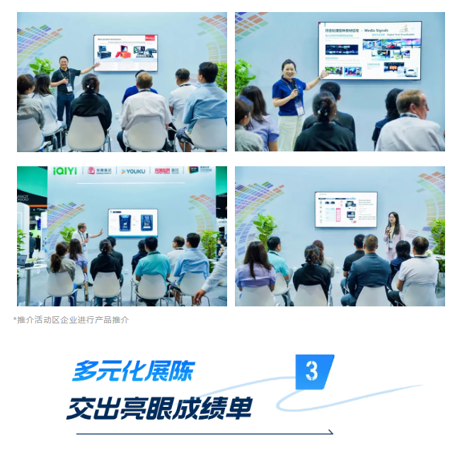 全媒体内容制作综合性解决方案、5G+4K背包、地面数字电视传输、沉浸式虚拟拍摄系统……参展企业将产品推介与现场展示相结合,三天举行12场创新产品与技术方案的推介活动,快速圈粉国际伙伴。