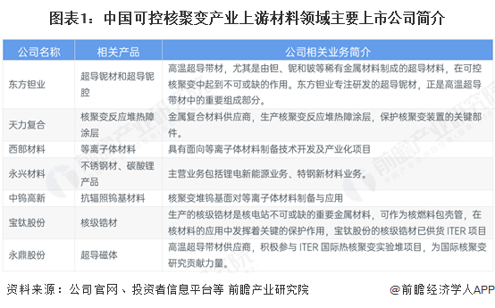 在上游原材料领域,可控核聚变对原材料的要求极为苛刻,涉及稀有金属、抗辐射材料、抗高温材料以及超导材料等多个方面。国内一些主要的上市企业在这方面做出了重要贡献,例如,东方钽业和永鼎股份等企业提供了超导材料,而天力复合和中钨高新等企业则负责提供器壁材料。