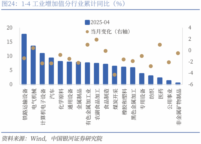 本文摘自:中国银河证券2025年5月19日发布的研究报告《经济的韧性—1-4月份经济数据分析》