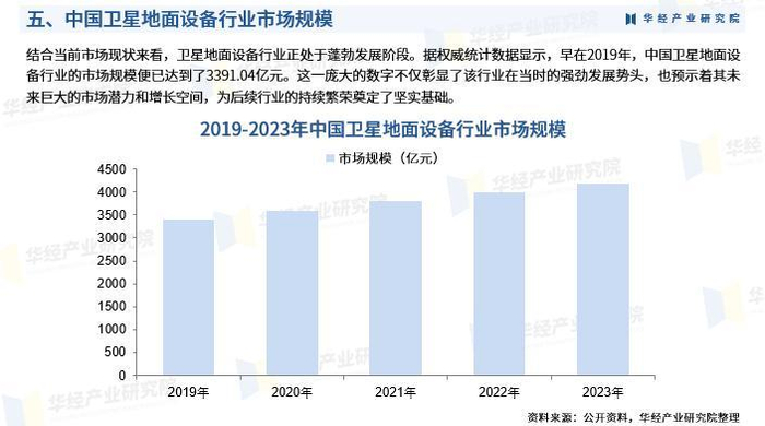 结合当前市场现状来看,卫星地面设备行业正处于蓬勃发展阶段。据权威统计数据显示,早在2019年,中国卫星地面设备行业的市场规模便已达到了3391.04亿元。这一庞大的数字不仅彰显了该行业在当时的强劲发展势头,也预示着其未来巨大的市场潜力和增长空间,为后续行业的持续繁荣奠定了坚实基础。
