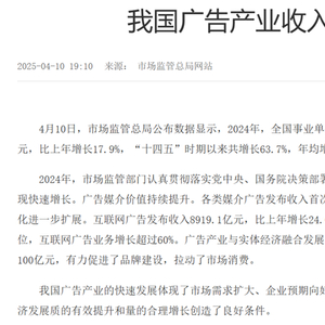 2024年,国内广告市场整体呈现增长态势,市场监管总局公布数据显示,2024年全国事业单位和规模以上企业广告业务收入达15464.1亿元,比上年增长17.9%,各类媒介广告发布收入增长18.2%,互联网广告发布收入更是增长24.0%,占各类媒介广告发布收入的86.5%。