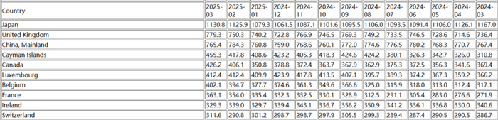不过,分析人士表示,由于该报告仅显示截至3月底持仓变动的数据,其实并无法反映出各国在特朗普以所谓“解放日”为由升级其贸易战后采取的行动,因而下月公布的4月TIC报告仍可能出现重大变化。