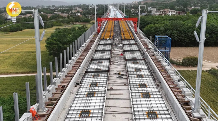 西安至十堰高速铁路是陕西“米”字形高铁网中重要的一“捺”,该条高铁途经西安、商洛、十堰三市,接入已建成的武汉至十堰高铁,新建正线长255.7公里,设计速度为每小时350公里,其中陕西段总长169公里,沿途设西安东、蓝田、商洛西、山阳、漫川关5站。