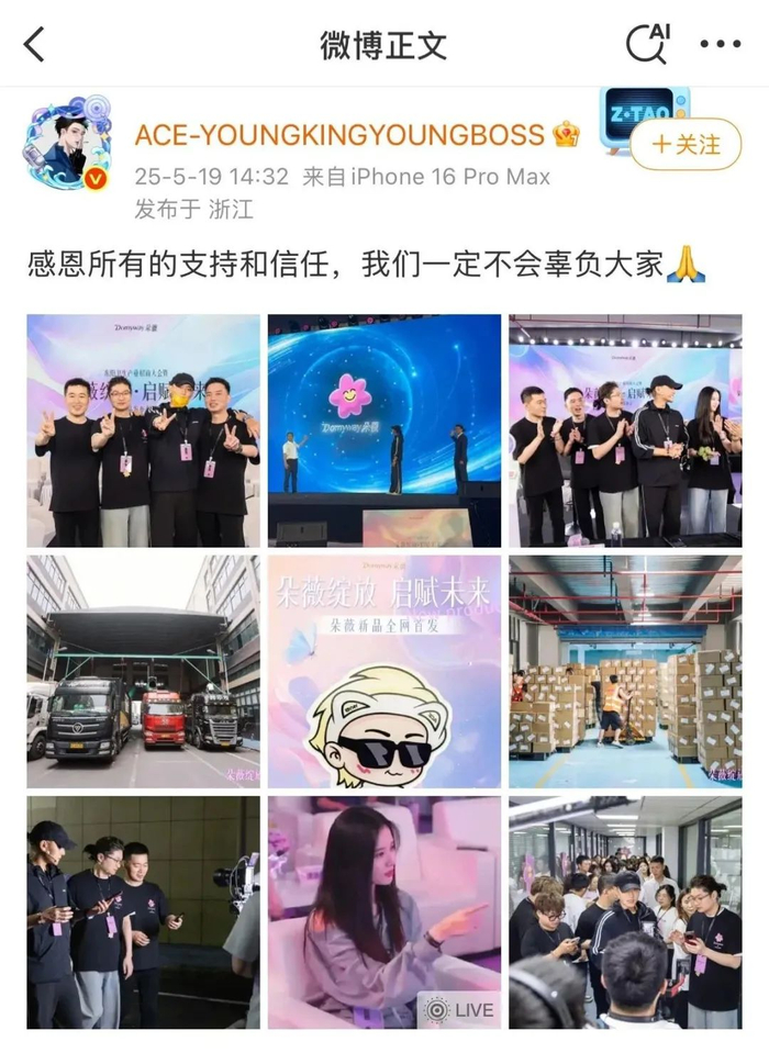 据悉,朵薇品牌的团队合伙人除了黄子韬,还有遥望科技董事长兼CEO谢如栋以及千芝雅董事长吴跃,三人均为男性。
