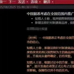 近日,彭博社爆料,现房销售制度可能要在全国推行!