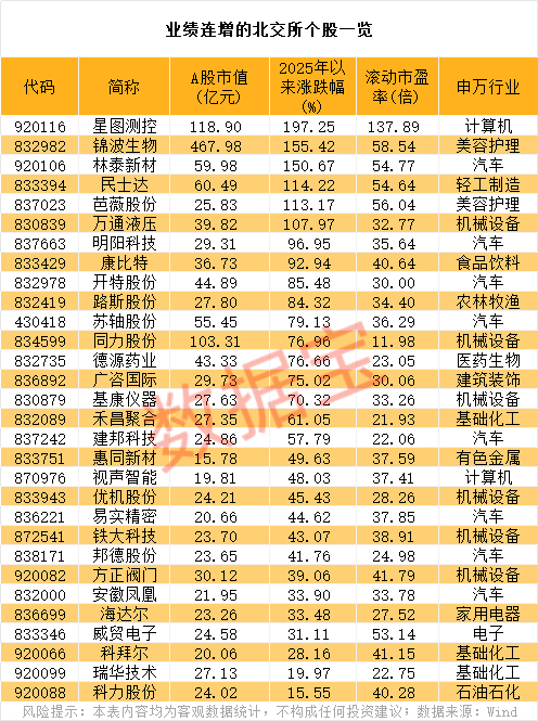 业绩连增的北交所股票揭晓