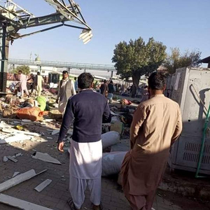 2024年11月9日,人们聚集在巴基斯坦西南部俾路支省首府奎达的火车站爆炸现场(手机照片)。新华社发