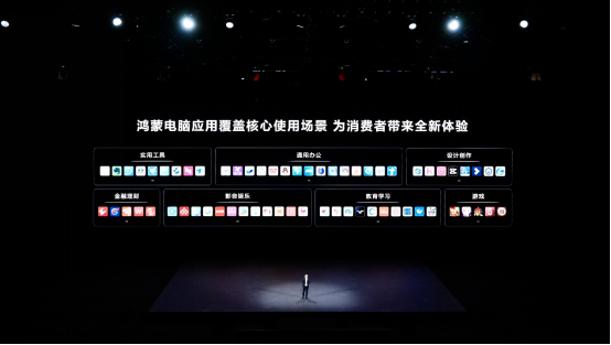 “鸿蒙电脑应用生态已覆盖通用办公、设计创作、实用工具、金融理财、影音娱乐、教育学习、游戏等用户核心场景。目前,鸿蒙电脑已实现与超1100款外设设备的互联互通,有超过150个专属电脑生态应用正在加速适配,上架融合应用数量达1000余款,预计年底将支持超2000个融合生态应用。”余承东说。