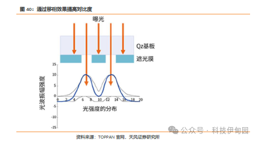 移相掩模指通过控制光的相位及透过率,改善对晶圆曝光时的分辨率及焦点深度(DOF:Depth of Focus),是提高了复刻特性的光掩模。典型的移相掩模包括“半色调型(Attenuated PSM)”及“列文森型(Alternative PSM)”等。