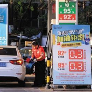 据国家发改委消息,自5月19日24时起,国内成品油价格将调整,每吨汽油下调230元、每吨柴油下调220元。机构测算,此次调价折合92号汽油每升下调0.18元,95号汽油每升下调0.19元,0号柴油每升下调0.19元。本轮是2025年油价第十次调整,也是年内的第五次下调。图为当日上海一处加油站,工作人员正在给车辆加油。